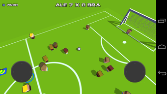 Os controles no Gol da Alemanha Simulator não podem ser levados muito a sério. Use dois joysticks virtuais na tela, um para o jogador e outro para a direção do toque/chute. Mas nada disso adianta, seu personagem está em campo com o ânimo dos convocados do Felipão.
